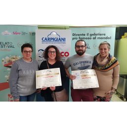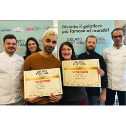 Reggio Emilia, 12 dicembre 2019 – Gelato Festival Challenge ha fatto tappa a Reggio Emilia, nella sede di Linea Bianca e G.I. Gelati, concessionari Carpigiani, dove l’11 dicembre si sono sfidati a colpi di dolcezza 21 gelatieri delle province di Reggio Emilia, Modena, Parma, Mantova e Pescara. Vincono la gara “Zucca con amaretti” di Sara Morani della gelateria Mia di Casina (Reggio Emilia), un gelato di zucca e amaretti ispirato al pesto contenuto nei tortelli di zucca, con scorza di limone e riduzione di pere e mele, e “Duchessa” di Fiorenzo Renzi della gelateria Fiore di Parma, un gelato ispirato all’omonima torta parmigiana composto da due gusti, uno zabaione con rhum di Mauritius e un cioccolato fondente, variegato con biscotto alla nocciola.